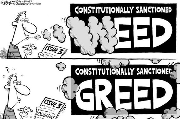Andy Joseph, CEO of Apeks Supercritical, called Issue 3 a "disgusting display of corporate greed." Marijuana Majority chairman Tom Angell opined, "Voters won't tolerate this issue being taken over by greedy corporate interests." Even a New York magazine headline barked, "Willie Nelson's Crusade to Stop Big Pot."