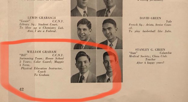 Born in Berlin in 1931, Graham (nee Wulf Grajonca) escaped Nazi Germany thanks to his parents placing him in an orphanage. He arrived in New York in 1938, where he eventually attended my alma mater, De Witt Clinton High School in the Bronx.