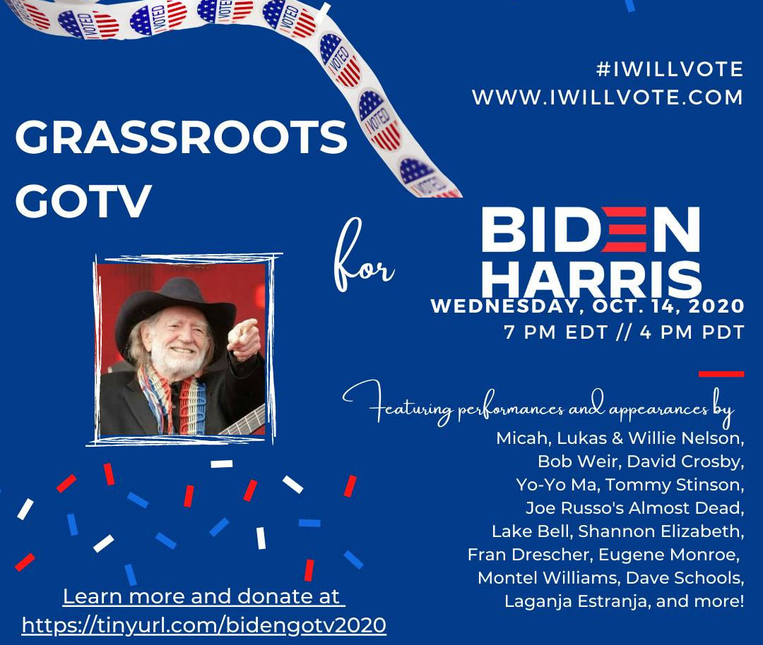 Willie Nelson headlined Joe Biden's virtual fundraiser on October 14. He did a previous one on June 29. Willie
