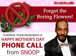 You can have Snoop Dogg, Justin Bieber, Charlie Sheen or 40 other celebrities ring up your mom today using Celeb Calls. Even better, Snoop can send you a "smoke invite" that references the Real Purple. The calls costs $4 each.