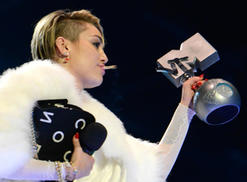 During her acceptance speech at last night's MTV European Music Awards in Amsterdam, Miley Cyrus took a half-smoked joint out of her bag, lit it and took a hit before leaving the stage.