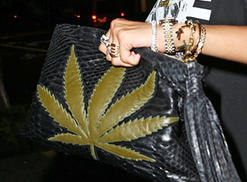 Rihanna's latest marijuana accessory is a pot leaf pocketbook. She was snapped holding the bag in New York on Monday.