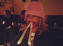 Rihanna took some time off from her concert tour to visit a coffeeshop in Amsterdam on Saturday. She looked ready to spark up these two bomber joints.
