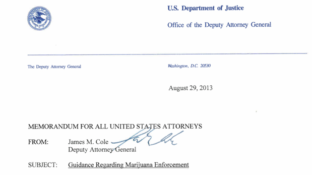 Deputy Attorney General James Cole issued a memorandum today clarifying the Justice Department's position on recreational and medical marijuana enforcement.