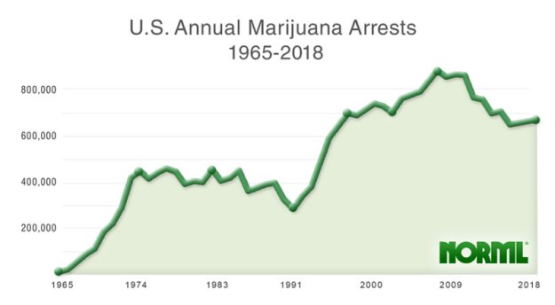 During these 14 years a total of 8.5 million U.S. marijuana arrests were made (610,267 per year average).
