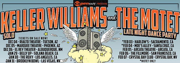 Colorado-based vaporizer and hash oil manufacturer O.penVAPE is presenting an eight-city tour featuring Keller Williams solo and late-night sets by The Motet. The California-Nevada swing begins on Thursday and runs through Feb. 7.