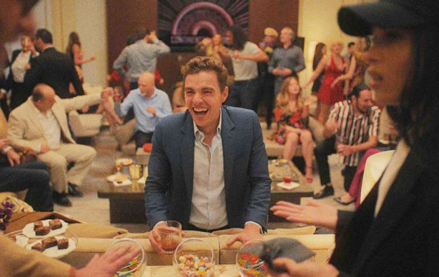 In the limo to the airport, Matt exalts, "We're gonna party tonight like it's Fear and Loathing in Las Vegas." But his deputy Sal Saperstein (Ike Barinholtz) challenges him. "You're gonna do drugs?" Sal asks. "You hardly smoke weed anymore. How many times have you done mushrooms?" He sheepishly replies, "Four."