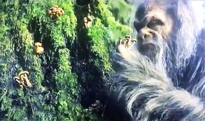 In the wacky Sasquatch Sunset, the elder Bigfoot munches on some shrooms in the wilderness. The Zellner brothers’ dialogue-less film is for fans of the ape-monolith prologue to Stanley Kubrick’s 2001: A Space Odyssey, featuring an unrecognizable Jesse Eisenberg and Riley Keough in Bigfoot costumes traipsing across a prehistoric landscape, foraging for food, taking dumps, screwing and giving birth.