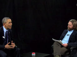 Pres. Obama makes a surprise appearance on Zach Galifianakis' web show, "Between Two Ferns." As the host lobs screwball questions, Obama lands a few solid blows to Galifianakis' ego.